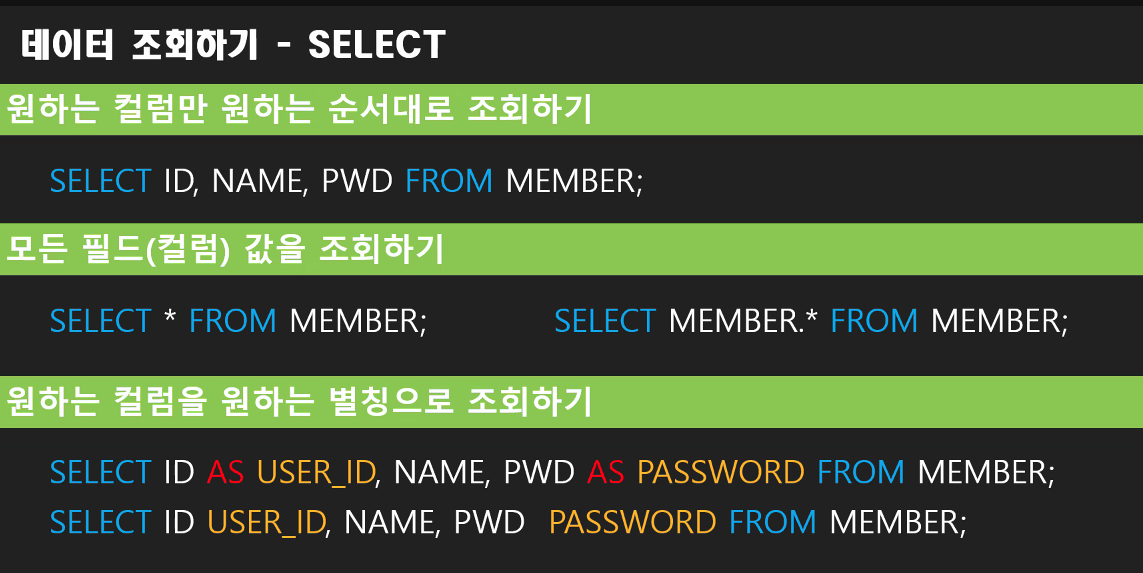 SELECT * FROM MEMBER ORDER BY NAME DESC;