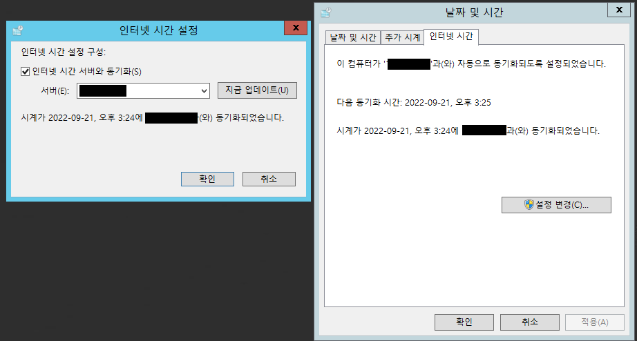 보안이나 특정 상황에 의해서 외부망에 연결하지 않는 내부 서버들이 있습니다. 이럴 경우 시간 동기화에 문제가 발생할 수 있는데 윈도우 NTP 서버 / 클라이언트 기능을 이용하여 위 문제를 해결할 수 있습니다. 하지만 이 해결 방법은 하나의 인터넷에 연결된 서버가 같은 망에 적어도 1개는 존재해야 가능합니다.