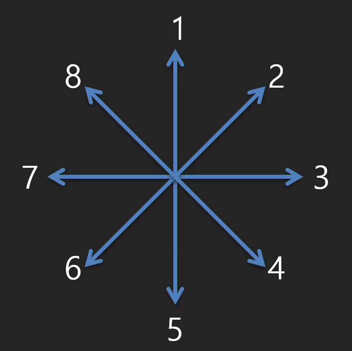4번 방향으로 가고 싶으면 다음과 같이 표시할 것이다.