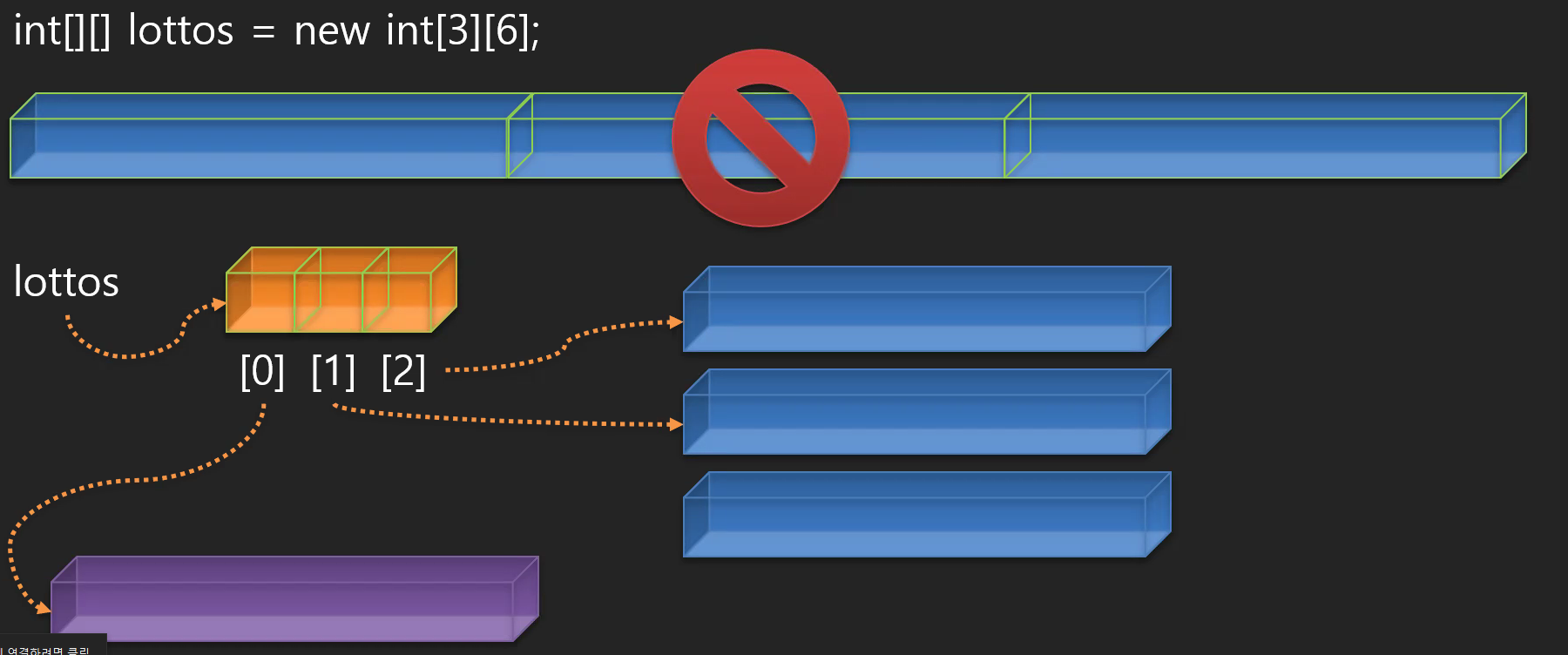 자바에서는 아래 그림처럼 다차원배열이 구성되어 있다.